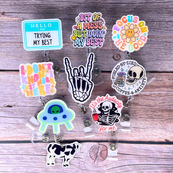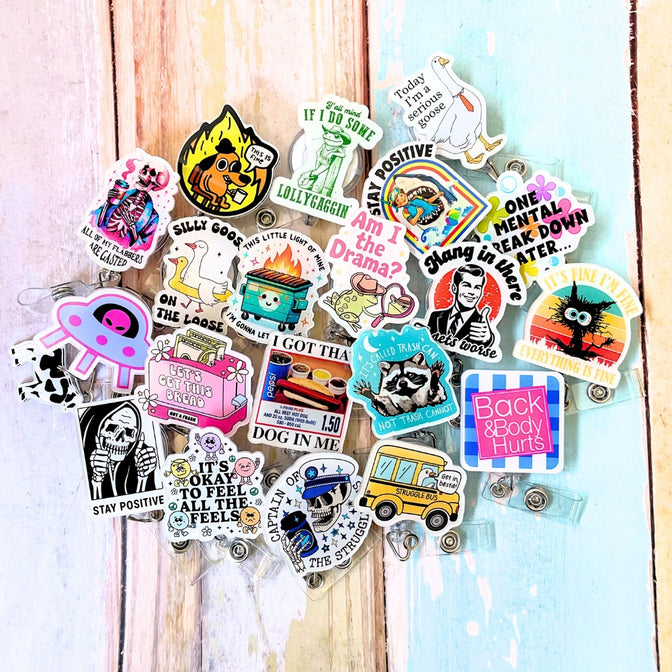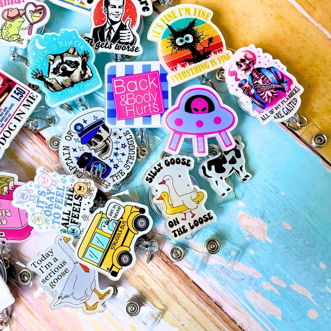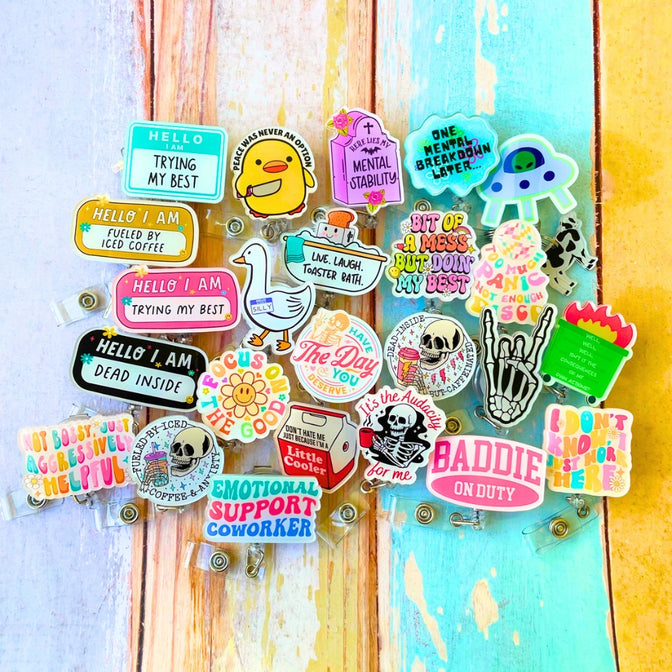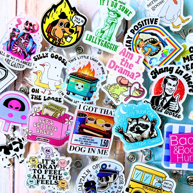 Badge Giggle isn't your average office supply store – we're a purveyor of pure, unadulterated fun for your workspace! Dive into our quirky collection of pens that wink, badge holders with personality, and all sorts of silly essentials designed to banish the boring and inject a dose of "tee-hee" into your day. Get ready to upgrade your desk from "blah" to "ha-ha"!
